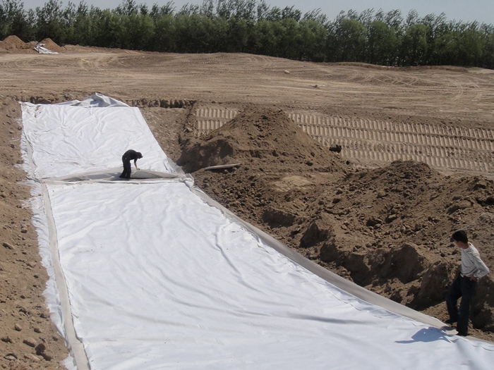 2.卸料時,自卸汽車由另一端開始填土,沿鋪土工布方向向后退式,避免載重車直接接觸土工布,尤其是推土機不能直接接觸布,局部應用人工整平。